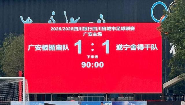 10月6日,川超联赛东部赛区第三轮比赛中,广安队与遂宁队以1:1的比分战平。